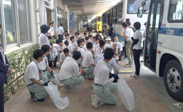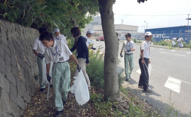 課外清掃活動はへの参加は2回目。高等部の生徒と幾つかのコースに分かれ、一緒に分類しながら清掃活動を行った。持ち帰ったゴミを分類した後、多目的ホールに移動。授業で焼いたクッキーと冷たいジュースを頂きながら、生徒の学校生活の様子を聞くことが出来た。 |