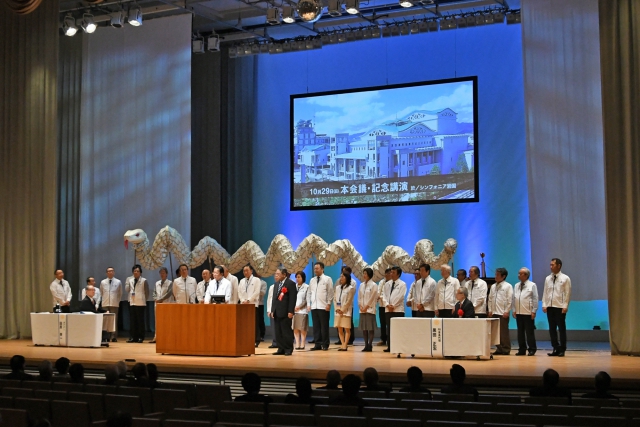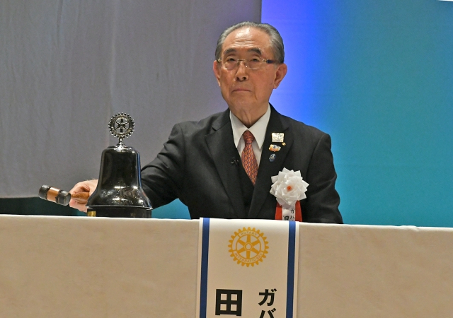 田原榮一ガバナーの点鐘で、地区大会本会議が終了した。引き続き17:00より懇親会が開催された。 |