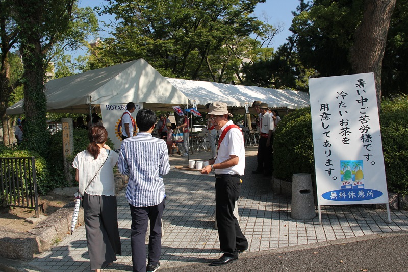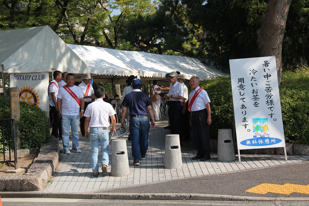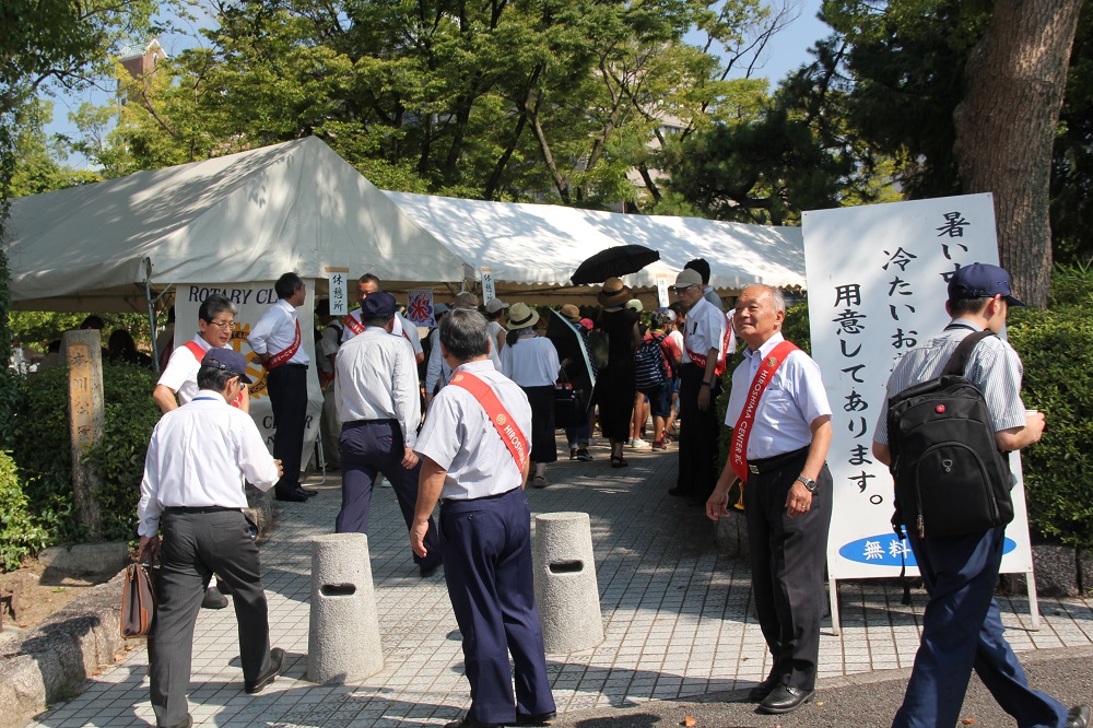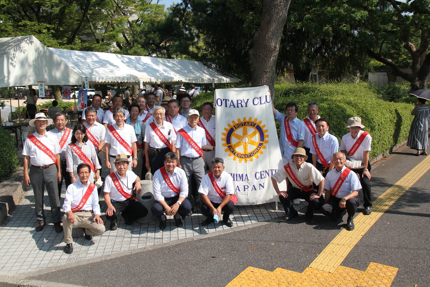 我々広島中央ロータリークラブのクラブ旗をテントに掲げ、ロータリークラブの社会奉仕の理念に基づいて行動している事を参列者の皆さまにご理解頂けたと思いますが、来年度以降も同様に奉仕活動を行います。
