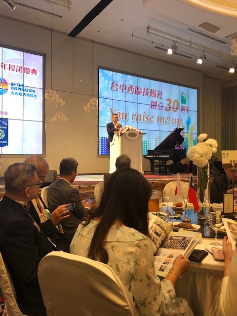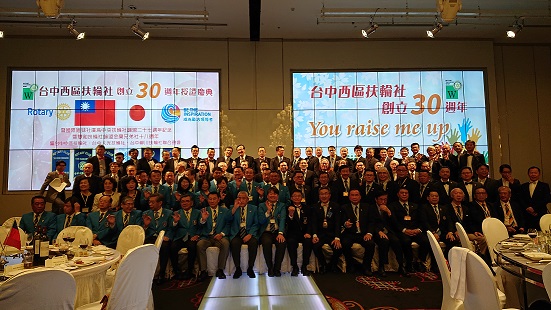 夕方からは、台中市西区RC創立40周年記念式典に広島中央RCより24名(内御令室4名)が参加しました。