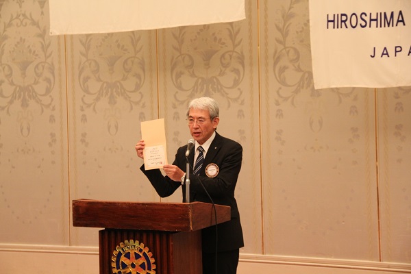 米山功労クラブ感謝状披露(表彰回数 19回) 2017年9月現在19,231,500円 「米山功労クラブ感謝状とチョコレート〈カカオ〉について」 皆さんこんにちは。2週間ぶりの例会ですがお変わりありませんでしょうか。 本日はお客様に在広RCの檜山様、卓話の中山様、そして入会予定の川村様、西川様に来て頂きました、どうぞごゆっくり例会をお楽しみください。 また本日は久しぶりに休養されていました前原会員が復帰されました。どうぞ又クラブを盛り上げて頂きたく思っています。 さてまず始めに、本日は米山功労クラブ感謝状を披露致します。 表彰は19回目で、今までの広島中央ロータリーの在籍、また現在在籍されているロータリアンの皆様によって、2017年9月現在19,231,500円になっています。この米山功労クラブ感謝状は、ロータリー米山記念奨学会が「平和日本を世界に理解させるために、アジア等の国々から一人でも多くの留学生を日本に迎え入れて、平和日本を肌で感じてもらうための国際親善と世界平和に寄与したいという願い」でロータリアンからの寄付を募り、その額が100万円に達する毎にクラブに贈られています。 本日の会長時間は、健康に重要な食生活における嗜好品のチョコレートについて、先日講演があった広島大学名誉教授の佐藤先生のお話をお伝えしたいと思います。 一般にチョコレートのイメージとして、四つの誤解 @にきびが出来る、A虫歯になる、B鼻血が出る、C太る、といったものがあります。実はチョコレートは体に良く、成分のカカオにはポリフェノール(カテキン、エピカテキン)、アルカロイド(カフェイン、テオブロミン)、ココアバターがあります。チョコレートの原料カカオ豆のカカオの木は、赤道+―20度以内の熱帯雨林にしか育ちません。カカオは、昔は不老長寿の飲み物で約4000年前から中南米の王族・貴族・兵士が飲んでいました。カカオ豆は貨幣と同じで、たとえば鳥一羽100粒、一個の卵は3粒、ウサギ一羽10粒、奴隷一人は100粒でした。1492年コロンブスがアメリカに上陸して、それから世界中に広まりました。カカオの木の学名には、テオブロマ、ギリシア語でテオ〈神〉、ブロマ〈食べ物〉神の食べ物(テオブロマ)、スエーデンの世界的有名な植物学者リンネが命名しました。 チョコレートの栄養効用(ポリフェノール、アルカロイド)は、抗酸化、抗癌、糖尿病予防、動脈硬化予防、血流の促進、そして認知機能の維持がありますが、現在内閣府戦略計画でも脳に対する機能研究が進められているそうです。 研究報告(国際スポーツ栄養学科誌 2015)では、本日の卓話の中山様のようなサイクラーの酸素消費量についての実験があります。9人の男性サイクラーに2週間、40gのダークチョコ(カカオ入り)摂取またはホワイトチョコ摂取、そしてチョコなしで、運動してもらうと、その結果は酸素消費量が13%低減(ダークチョコ摂取)、走行距離が17%アップ(ダークチョコ摂取)になりました。仮説としてカカオ豆中のポリフェノールが血管を拡張させ酸素消費量を低減したという報告がありました。しかし実際この成分は、血中に入らないので、腸内細菌を変化させNOを増やしたのではないかとも言われているそうです。 またチョコレートの香りには、落ち込んだ気分を高揚させる作用と興奮した気分を沈静させる作用があると言われており、失恋したらチョコレート、試験や試合の前にはチョコレートが良いようです。 我々ロータリアンにとって奉仕活動を実践するに当たり、チョコレート(カカオ(神の食べ物))は、癌を含めた生活習慣病の予防と認知機能維持にちょうどいい食べもののような気がしました。 幹事報告 ●BOX配布物の確認 @ロータリーの友誌 A理事役員会議事録・11月例会プログラム B地区大会最終案内 ●回覧物 @新会員歓迎会及びR情報集会出欠表 A創立39周年記念例会出欠表 ●ロータリー情報ハンドブックの追加注文を受け付けます。 ご希望の方は今週中に事務局までご連絡ください。 委員会報告等 ・職業奉仕=ロータリアンの行動規範唱和 ・出席=出席報告 ・ロータリーの友紹介