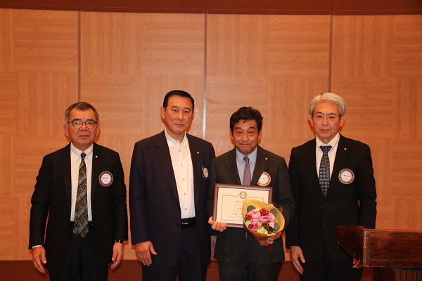 *会長より四つのテスト・バッチ・ニコニコチケット・花束贈呈