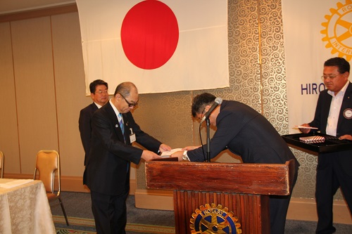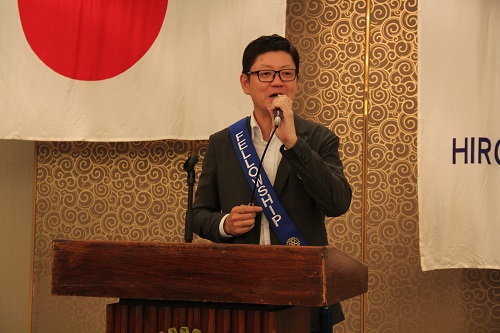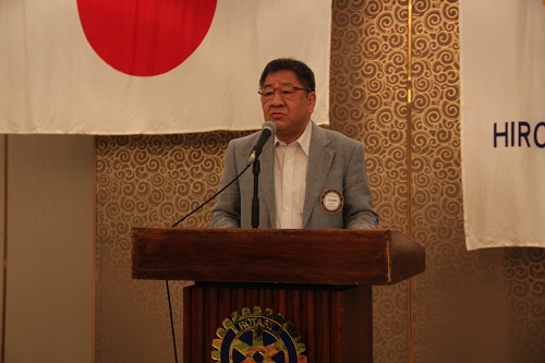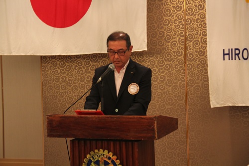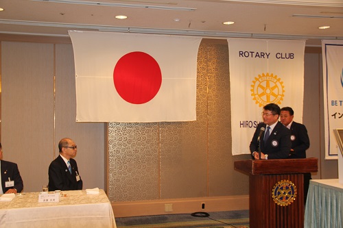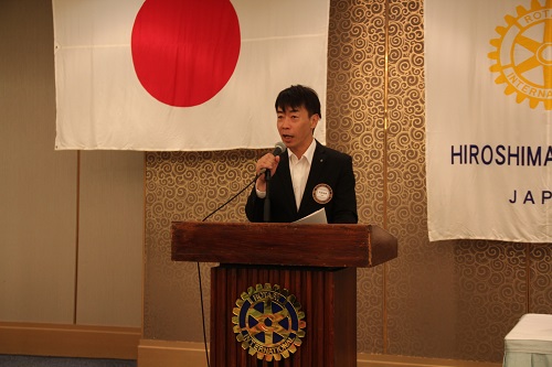 「夏の家族会を終了して」 「ガバナー公式訪問開催にあたり」 国際ロータリー第2710地区ガバナー吉原様、地区代表幹事安保様、グループ7ガバナー補佐の松田様、ようこそ広島中央ロータリーへお越しいただきました。吉原ガバナーによる卓話時間、クラブフォーラムの開催を楽しみにしております。よろしくお願い致します。 さて、先日の夏の家族会では、宗正理事、大内委員長をはじめ親睦委員皆様、会場をご提供頂きましたグランドプリンスホテル広島の総支配人の平瀬様ありがとうございました。 また、親睦委員会と共に副幹事のお二人は、イベントを率先して盛り上げて頂き感謝して おります。 この度の豪雨災害に対しまして、いち早く地区としての寄付を募り復旧に役立てられると思っております。また、中央ロータリー独自の支援ができないかを検討しておりますので、皆様のご協力を頂ければ幸いです。1人の人間では、この様な災害、復旧に対して本当に無力です。しかし、小さな力も多くの人が集まることによって、大きな成果を得られると信じております。特に我々ロータリアンは大きな役割を担えると思っておりますので、よろしくお願い致します。 幹事報告 ●BOX配布物の確認 @会報5.6月号 A本日の例会・フォーラム資料 B地区大会本登録案内 C第17回市民がつくる追悼と音楽の祭り「ヒロシマの祭り」案内 理事役員会等 ・本日例会終了後3階「音戸」の間にてガバナー公式訪問フォーラムを開催 委員会報告等 ・出席=出席報告 ・ロータリー財団委員会=愛のコイン箱 ・国際奉仕=古切手類収集、サンタローザ交換留学について ・人間尊重・社会奉仕=おもてなし事業について |