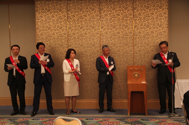 【来賓】 (随行幹事)国際ロータリー第2710地区代表幹事 安保雅文(あぼ まさふみ)様 国際ロータリー第2710地区グループ7ガバナー補佐 松田文雄(まつだ ふみお)様 |
