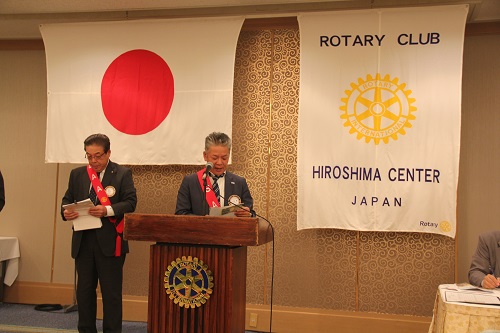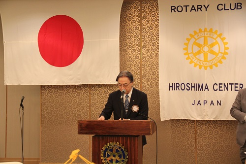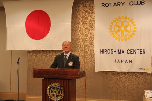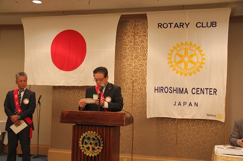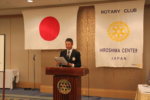 ○「経済と地域社会の発展月間・米山月間」に因んで ○米山功労クラブ感謝状披露(表彰回数 20回) 2018年9月現在20,033,500円(特別寄付累計金額) 11月28日に予定されている広島中央RC 40周年に向けてのお願いをしたいと思います。広島中央RCは、一昨年度田原ガバナーを排出し、地区大会を成功させ、さらに、昨年度、迫田ガバナー補佐の下、グループ6・7の合同IMを開催いたしました。これは、会員の皆様の協力と、大きな事を共に成し遂げようとする意志があったからだと思っています。40周年の事業を成し遂げるには、今一度、皆様の同様のご協力が必要だと思っています。そして、その力、団結力を内外に示す事で、広島中央RCの魅力をアピールできると思います。そこで、いま一度、地区大会、IMで着用したブレザーを用い、記念事業、記念式典、晩餐懇親会の雰囲気を盛り上げ、成功させたいと思いますので、ご協力をお願いいたします。 幹事報告 ●BOX配布物の確認 ・雑誌類=ロータリーの友誌 ・理事役員会議事録/11月プログラム ・映画「ブレス」のパンフレット ●回覧物 @3RC合同夜間例会出欠表 A創立40周年記念式典・晩餐会出欠表 B新会員歓迎懇親会・R情報集会出欠表 ●来る10/19(金)〜21(日)は地区大会です。参加者は宜しくお願いします。 ●次週例会について 定款細則第8条第1節(C項)による指定休会日の為、休会となります。 委員会報告等 ・職業奉仕=ロータリアンの行動規範唱和 ・出席=出席報告 ・クラブ広報=ロータリーの友紹介 ・青少年奉仕=広島中央ローターアクトクラブと広島東ユースクラブとの交流会報告 |