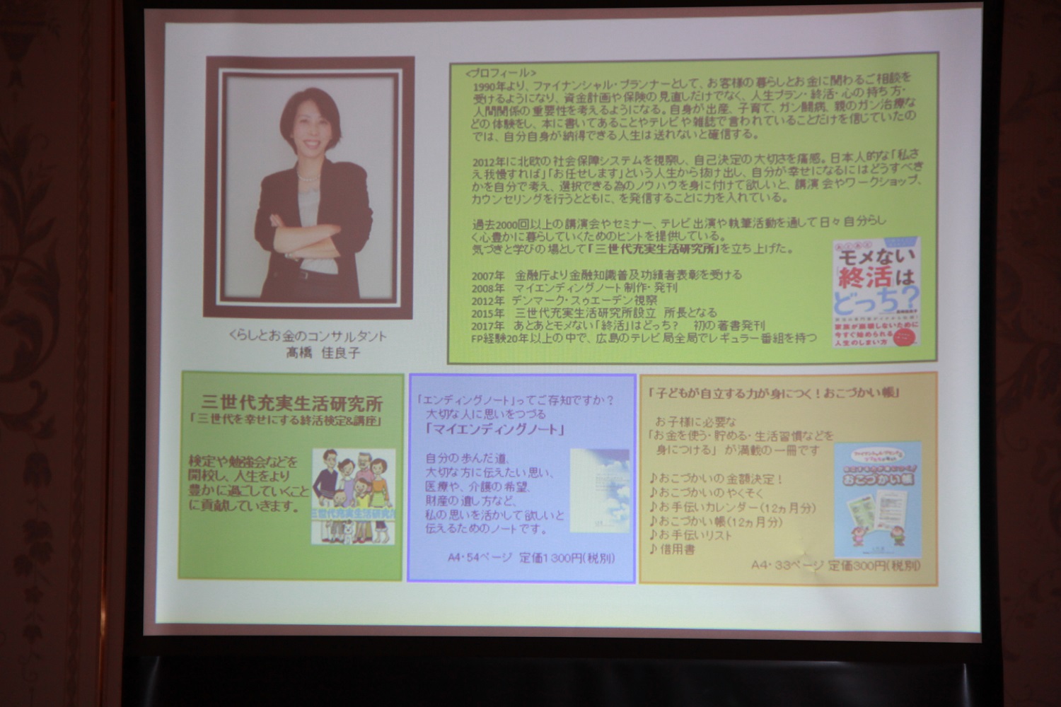 株式会社 ライブアンドマネークリニック代表取締役社長の高橋 佳良子様より 「よりよく生きるために・・・”終活”のすすめ」と題して卓話が行われました。 |
