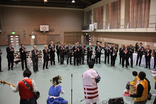 〇会長挨拶 「広島中央特別支援学校」訪問例会にあたり 広島県教育員会の皆様、広島県立広島中央特別支援学校の御関係者の皆様、例会場をご提供いただきましてありがとうございました、さて、本日は、第2710地区の地区補助金を利用した 広島県立広島中央特別支援学校への音楽用具の寄贈と生徒の皆さま、教職員の皆さまの交流会となっております。ご承知の通り、一昔は、物品を寄贈するだけの支援も行われていたかも知れませんが、現在は、もっと支援先の事を知り、支援の輪を広げる事が求められております。広島県立広島中央特別支援学校への支援は今年で2年目ですので、昨年よりもっと深く知り、今後の活動の糧にしたいと思います。 〇贈呈式挨拶 本日は、この様な式典をご用意いただきありがとうございました。昨年は、運動用具を贈呈させて頂きましたが、今年は、音楽(楽器)を贈呈したいと思います。音楽は、音を通じて人の想いを届けることのできる素晴らしいものです。生徒のみなさん。沢山使ってください。よろしくお願いいたします。 幹事報告 ●100万$食事(幹事告知) 委員会報告等 ・出席=出席報告 備 考 例 会 12:30〜 昼食(弁当)、施設概要説明 校内見学 13:05〜 贈 呈 式 13:30〜 贈呈式と交流会 「目録及び音楽用具一式 贈呈」 「中学部生徒による発表及び会員とのふれあい」 ※12:00〜と12:15〜の各限定6名「10分間あんま」希望者のみ |