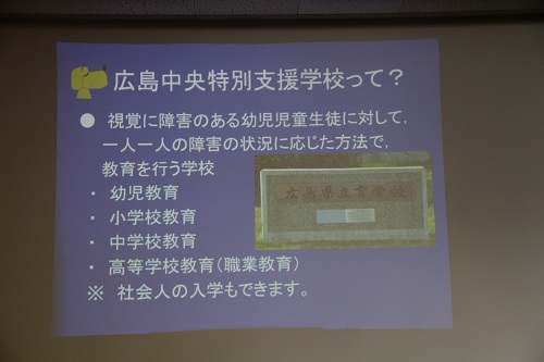 県立広島中央特別支援学校への音楽用具一式寄贈と交流会 (地区補助金事業) 「施設概要説明、校内見学、贈呈式、交流会」 |