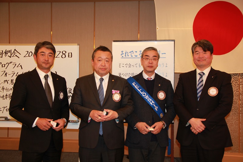 皆さま、先週は、広島県立広島中央特別支援学校への楽器の寄贈の贈呈式にご出席頂きましてありがとうございました。これは、ロータリー財団の地区補助金事業によるものです。当日は、生徒の皆様による劇を観たあと、生徒によるヤングマンの演奏があり、皆さんで合唱して有意義な時間でした。奉仕プロジェクト委員会戸田理事をはじめ委員会の皆さま、そして、ご参加頂きました皆さまありがとうございました。本当に子ども達が喜んでいる姿を見る事が出来ました。 さて、本日は、ポールハリスフェロー5名の表彰をさせていただきます。 ○ベネファクター(古澤会長)表彰 ○マルチプルPHF3回(宗正会員)表彰 ○マルチプルPHF2回(河野会員)表彰 ○マルチプルPHF(児玉・村本会員)表彰 ○ポールハリスフェロー(鳥井会員)表彰 幹事報告 ●BOX配布物の確認 @雑誌類=地区活動報告書、クラブ会報12月号 A理事役員会議事録及び2月例会プログラム B本日の卓話時間(クラブフォーラム)資料 ●ロータリーレート変更 2月は1ドル112円となります。 ●RI第3690地区(韓国)地区大会のご案内 日程 2019年4月19日(金)・20日(土) ※申込期限2/22(金)希望者は事務局までお知らせ下さい。 ●回覧物 ・地区内ローターアクトクラブ賛助金申込(締切は今月末)一口500円 ●IM(インターシティミ−ティング)のお知らせ 今週の土曜日(2/2)は14:00からリーガロイヤルホテル広島でインターシティミ−ティングが開催されます。出席予定者は宜しくお願いいたします。当日は幹事が受付をしますので、急遽の欠席変更通知は幹事に必ずご一報下さい。 (無断欠席の無いように!!) 理事役員会等 ・本日、例会終了後3階「安芸」の会場にて第2回クラブアッセンブリー開催 委員会報告等 ・出席=出席報告 ・ロータリー財団委員会=愛のコイン箱 ・国際奉仕=古切手類収集 ・人間尊重・社会奉仕=1月21日訪問例会のお礼、エコドリーム運動 |