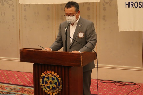 みなさま、こんにちは。 先週は、本当に、久しぶりの例会であったにもかかわらず、欠席しました。誠に申し訳ございませんでした。 新型コロナウイルス感染症の状況は、収まりをみせてはいるものの、まだまだ、予断を許さないところでございます。こうして、顔を合わせる例会につきましては、なによりも、ご健康とご安全の確保を最優先で、開かせていただいております。何分にも、初めてのことばかりで、不行き届きの点も多々あるとは存じますが、何卒、ご理解、ご容赦いただきたく、よろしくお願い申し上げます。 はじめに、本日は、後ほど、すでにみなさま方にお知らせしましたとおり、欠席のメイクアップ期間に関する細則の改正について、臨時総会を開催させていただきます。よろしく、お願いいたします。 続きまして、誠に残念なご報告ですが、金井会員が、一身上の都合で退会されました。金井会員からは、お手紙をいただいておりますので、ご紹介いたします。(お手紙のご紹介) 続きまして、新型コロナウイルス感染症に関する臨時休会制度について、ご案内します。(制度のご紹介)なお、この制度は、あくまでも、新型コロナウイルスという極めて特殊な状況下において、地方自治体より休業要請を受けた施設等を経営され、経済的に著しい影響を受けられた会員が、経済的理由で退会されるのを防止するための、臨時・特例のものであることを、念のため、申し添えさせていただきます。 以上で、会長時間を終わります。ありがとうございました。
