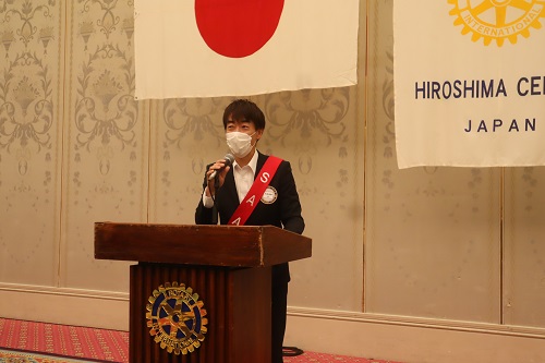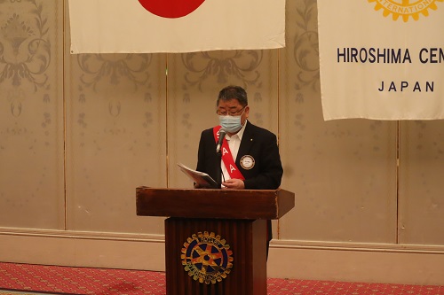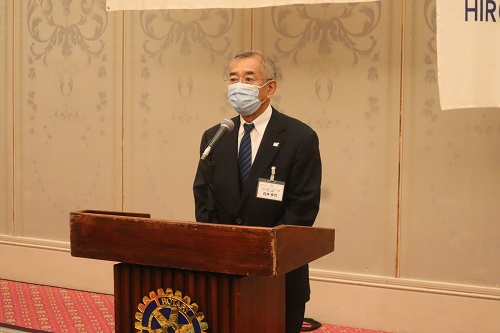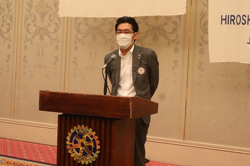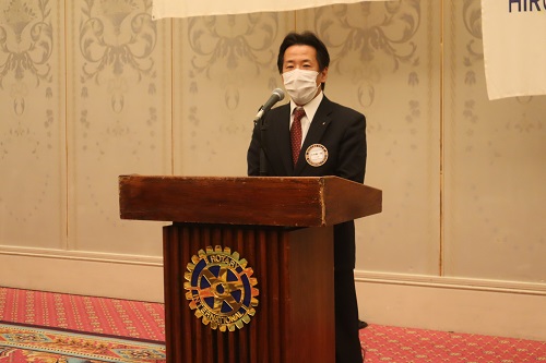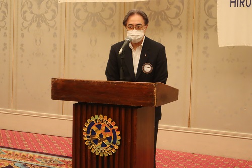 | 皆様、こんにちは。グループ7ガバナー補佐の白井浩二と申します。広島中央ロータリークラブの例会には久しぶりに来させていただきました。以前は何度かお邪魔をさせて頂いたこともありました。昔からの会員のお顔を拝見し、懐かしく思っております。再来週には脇ガバナー訪問もございますので、どうぞ宜しくお願い申し上げます。 | ||