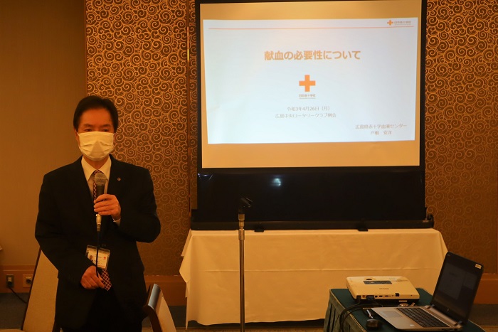 戸根安洋様による 「献血の必要性について」と題して卓話が行われた。 |
