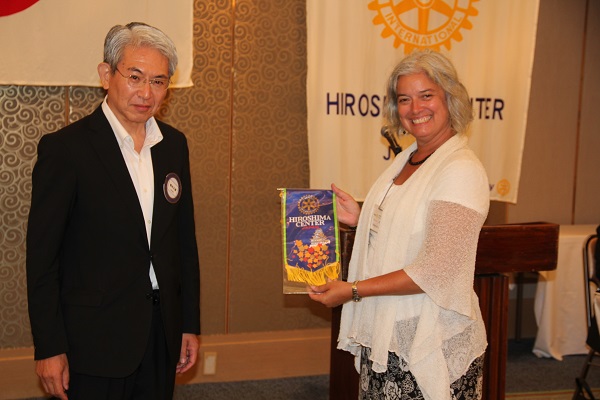 米国カリフォルニア州Santa Rosa Sunrise Rotary Club、鹿児島西ロータリークラブおよび鹿児島サンタローザ友好協会の共同事業である学生交換プログラムの御一行が2年ぶりに本年7月20日から24日まで広島を訪問されました。20日歓迎会、21日平和学習、22日宮島見学・花火大会ご招待など当クラブとして協力させて頂きました。24日は御一行を例会に招待し、七枝国際奉仕委員から参加者の紹介の後、長澤のビデオ上映、引率のデボラさん・参加学生のナッシュ君のスピーチに引き続いて、鹿児島サンタローザ協会事務局長でもある七枝会員から鹿児島のサンタローザ友好協会の成り立ちを語って頂きました。 デボラさんからは広島中央ロータリークラブの会長、幹事、SAA・国際奉仕委員長に記念品の贈呈があり、最後に当クラブの嶋本会長からも記念品の贈呈がありました。 今回の参加者は以下の通りです。 引率:Chaperone: Deborah Cullen 数学教師 学生:Tiffany Liang, female (16) Ian Azmoudeh, male (16) Kenny Petro, male (16) Nash Raven, male (16) John Vozaitis, male (16) ガイド:坂元みどり(鹿児島サンタローザ友好協会幹事) |