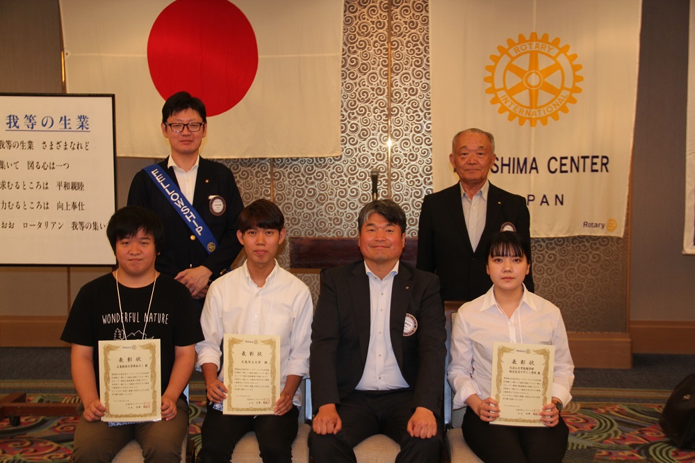 2019年6月2日の基町クレド広場で開催したマイカー乗るまあデー&献血支援活動に参加してくださった近隣6大学と1グループの学生に対し、感謝状贈呈式が行われた。