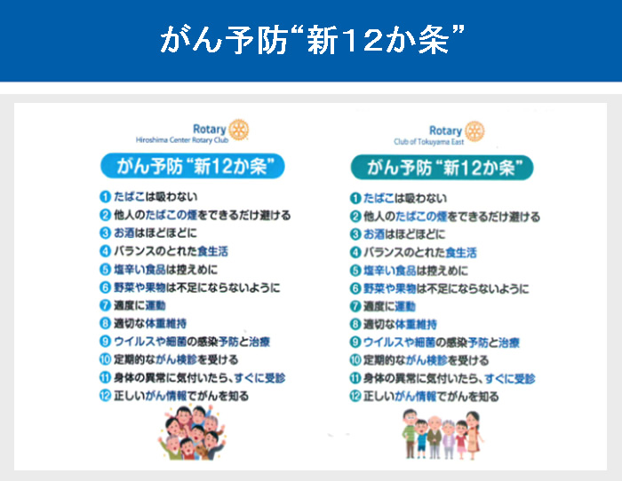 次に、ロータリー戦略計画の重点分野「疾病予防と治療」に相当する「がん予防の普及推進」を、2016年度から3年間の地区戦略計画として立ち上げ、「地区がん予防推進委員会」(わがクラブから藤村欽吾委員長、と児玉哲郎会員外地区グループから14名の委員)を設置しました。