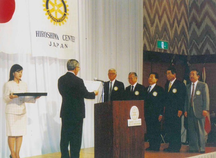 当時は、クラブ創立3年目、会長は故山村会員、幹事は熊野会員であり、例会会場は、広島そごう12階のレストラン、ゲストが多くて、明るく和やかなクラブであり、活気に満ちていました。多種多様なロータリアンと知り合いになり、特に、故城本正昭会員、故朝枝七朗会員、柚崎博会員の方々には大変懇意にして頂き、ロータリーを家族と共に楽しむことを学びました。